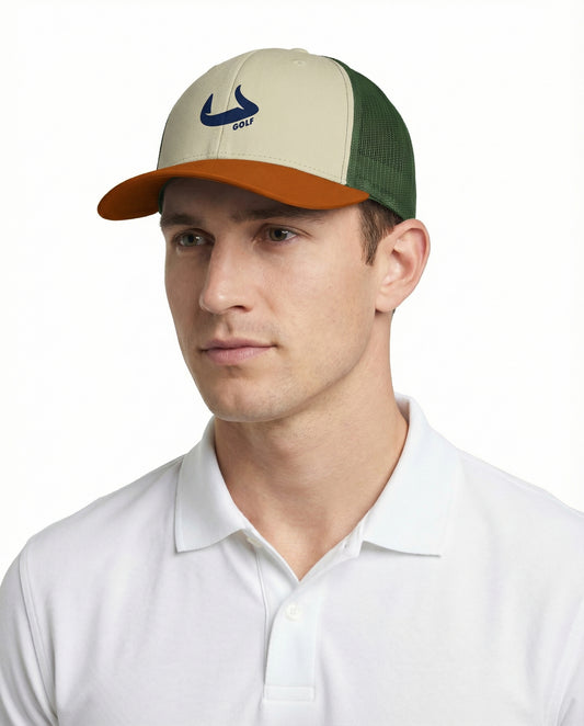 Bull Golf - Tan Orange Green Structured Classic Snap Back Hat | Bull