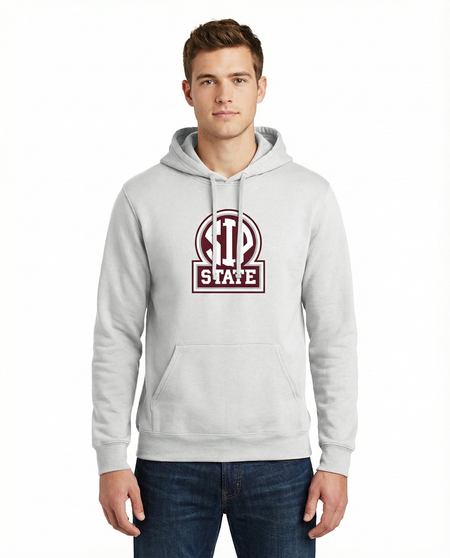 Elevate your SIP wardrobe with this premium white graphic hoodie, designed for the discerning sports fan who appreciates quality and style. Crafted from soft, durable fabric, this unisex piece features a distinctive SIP State graphic that celebrates the SIP lifestyle. Perfect for layering on the course or wearing casually off the fairway, it offers comfort and versatility for any season. The relaxed fit accommodates all body types, making it an essential addition to your Mississippi apparel collection.